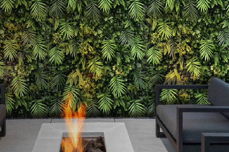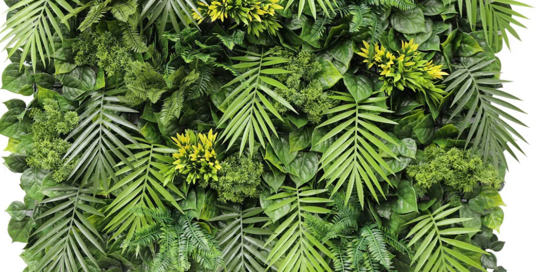 - High-quality artificial tropical plants on a plastic mesh grid